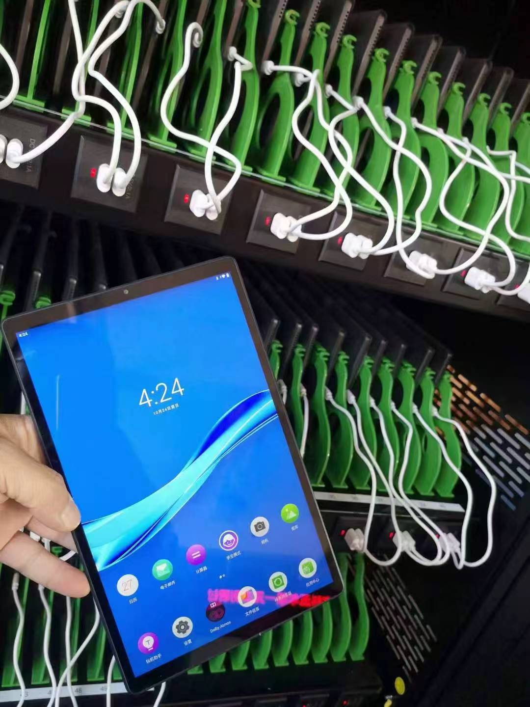 充電環(huán)節(jié)的損傷,很多時(shí)候都是隱性的,比如接口被硬插壞、電池過(guò)充鼓包,等發(fā)現(xiàn)時(shí)已經(jīng)沒(méi)法修了。充電柜的自適應(yīng)充電插頭,就是為了解決這些問(wèn)題而生的。它帶彈性伸縮結(jié)構(gòu),不管是什么型號(hào)的平板接口,都能兼容,插入時(shí)會(huì)自動(dòng)對(duì)準(zhǔn)角度,不用費(fèi)力硬插,從根源上避免接口磨損、針腳彎折。而且搭配內(nèi)置的智能芯片,還能根據(jù)平板電量自動(dòng)調(diào)電流,電量滿(mǎn)了就切換成涓流保護(hù)模式,既不會(huì)過(guò)充,也不會(huì)因溫度過(guò)高傷電池。這種設(shè)計(jì)看著簡(jiǎn)單,卻能實(shí)實(shí)在在延長(zhǎng)平板電池和接口的使用壽命,充電時(shí)也不用一直盯著。